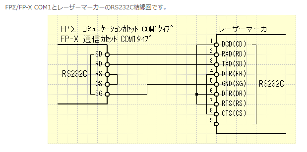 FPΣ FP-X COM1とレーザーマーカーのRS232C結線図