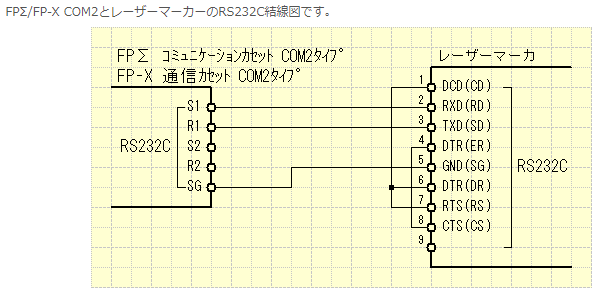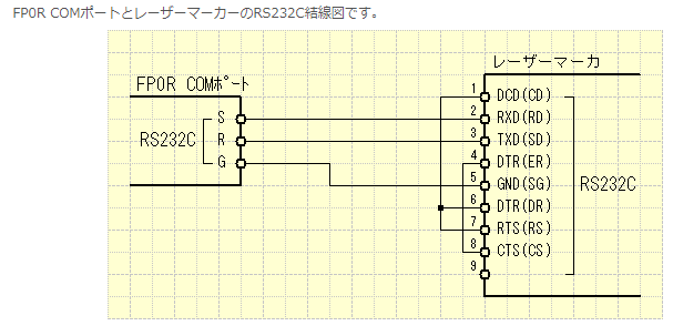 FP0R COMポートとレーザーマーカーのRS232C結線図