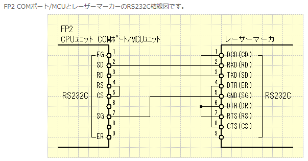 FP2 COMポート MCUとレーザーマーカーのRS232C結線図