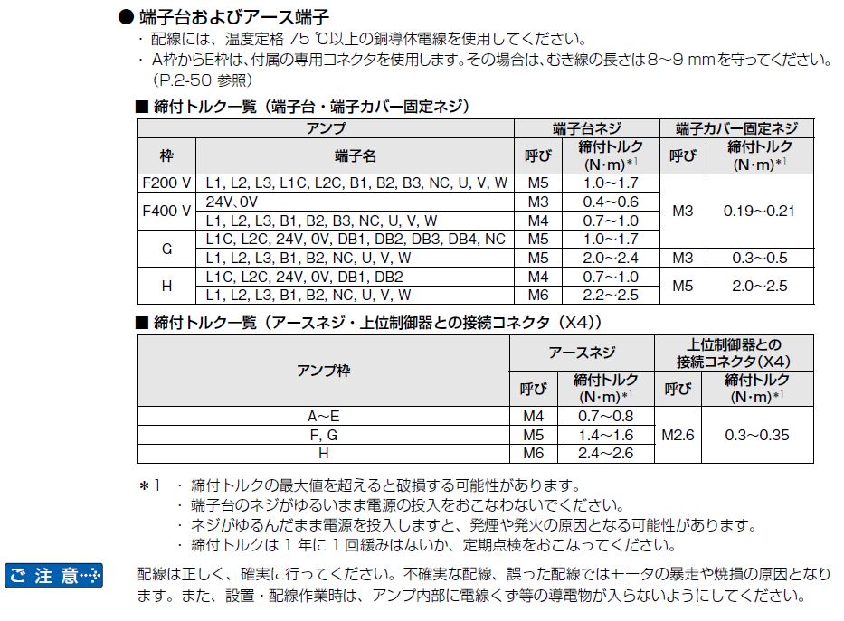 MINAS-A5シリーズのサーボアンプに使用している下記電線の適用電線径を教えてください。・主回路用電線、・制御電源用電線、・モータ用電線、・モータブレーキ用電線[30132]